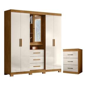 Organize seu quarto com elegância e o melhor custo benefício do mercado. Apresentamos o Guarda Roupa Solteiro Eldorado e Cômoda Vitória fabricados pela Moval. Guarda Roupa com 05 portas e 03 gavetas com corrediças metálicas, portas laterais avançadas, porta objetos com espelho e chave, puxadores em MDF, cabideiros e calceiros em alumínio para melhor organização interna e pés em PVC. A cômoda possui 03 gavetas com corrediças metálicas e puxadores na cor bronze. Fabricado com materiais de alta qualidade que garante resistência e durabilidade ao produto. Confira mais detalhes e aproveite! Características Técnicas: