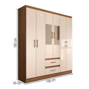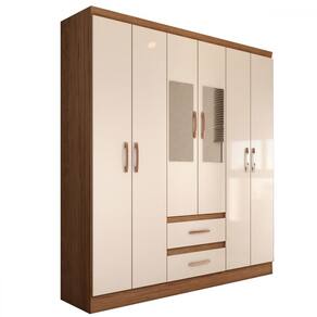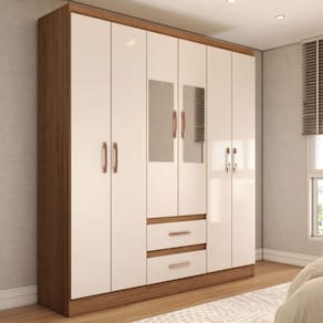 O(a) Guarda-Roupa Solteiro Elise com Espelho 6 Portas 2 Gavetas Off White/Nogueira - Loja é produzido em MDP na escala de brilho Semi-Brilho, e possui um grau de dificuldade de montagem: Médio.