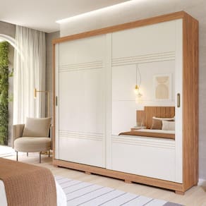 Características: 2 Portas de correr Acabamento em baixo relevo Trilho em alumínio 4 Gavetas Corrediças telescópicas Cabideiros em alumínio com suporte metálico Divisão interna com duas opções de montagem