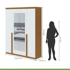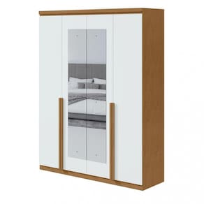 Guarda Roupa Solteiro Espelho 4 Portas 2 Gavetas Alonzo Lopas - Off White