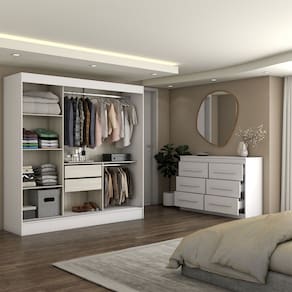 - Acompanha: Guarda-Roupa + Cômoda + Kit Ferragem + Manual de Montagem