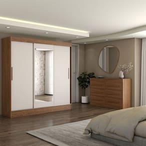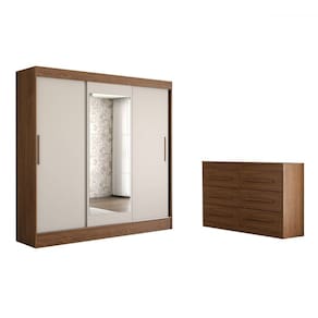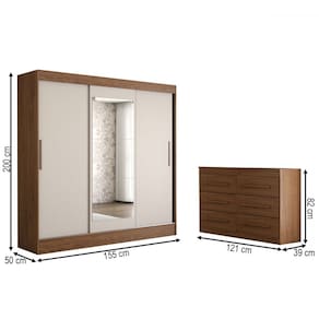 O(a) Guarda-Roupa Solteiro Europa 3 Portas 2 Gavetas e Cômoda 6 Gavetas Espelhado Cinamomo/Off White - Loja é produzido em MDF e MDP na escala de brilho Semi-Brilho, e possui um grau de dificuldade de montagem: Médio.