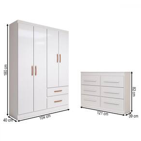 O(a) Guarda-Roupa Solteiro Europa 4 Portas 2 Gavetas e Cômoda 6 Gavetas Branco - Loja é produzido em MDP na escala de brilho Semi-Brilho, e possui um grau de dificuldade de montagem: Médio.