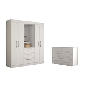 O(a) Guarda-Roupa Solteiro Europa 4 Portas 3 Gavetas e Cômoda 6 Gavetas Branco - Panorama Moveis é produzido em MDF e MDP na escala de brilho Brilho, e possui um grau de dificuldade de montagem: Médio.