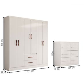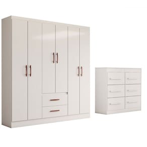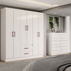 O(a) Guarda-Roupa Solteiro Europa 6 Portas 2 Gavetas e Cômoda 6 Gavetas Branco - Loja é produzido em MDP na escala de brilho Semi-Brilho, e possui um grau de dificuldade de montagem: Médio.