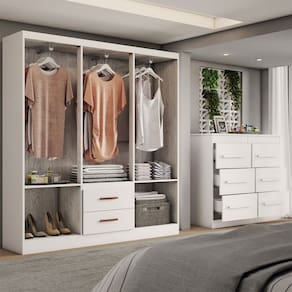 - Acompanha: Guarda-Roupa + Cômoda + Kit Ferragens + Manual de Montagem