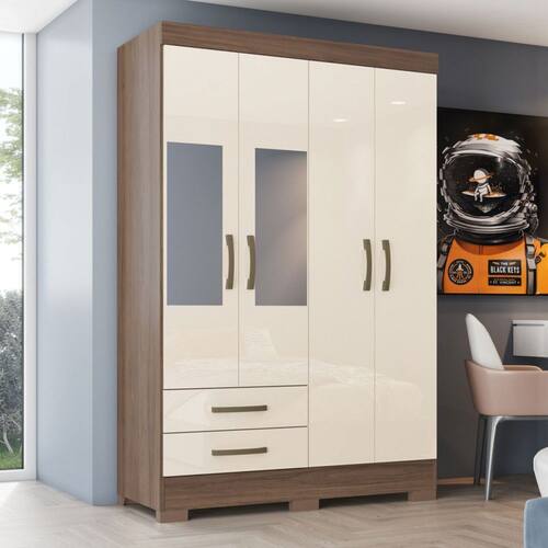 O(a) Guarda-Roupa Solteiro Fabuloso 4 Portas 2 Gavetas com Espelho Castanho Off White - Henn é produzido em MDP na escala de brilho Brilho, e possui um grau de dificuldade de montagem: Médio.