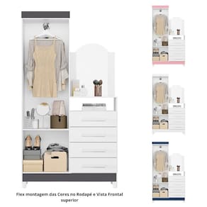 O Guarda Roupa Solteiro Flex 2 Portas com Cômoda 3 Gavetas com Pés e Espelho New Capri Albatroz um conjunto funcional e elegante, ideal para otimizar seu espaço. Produzido em MDP de 12 e 15mm, com fundo em HDF 3mm, oferece durabilidade e resistência. O guarda-roupa conta com nicho e prateleira que suportam até 4kg, além de espelho com topo curvo -60x39 cm-. A cômoda possui 2 portas, 4 gavetas com corrediças telescópicas e dobradiças metálicas, garantindo praticidade. Pés em PVC e puxadores de MDF revestidos complementam o design moderno. Gavetas suportam até 3kg cada.