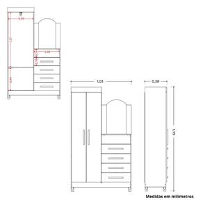 Dimensões: Altura: 179 cm Largura: 103 cm Profundidade: 38 cm Peso: 43,60 kg