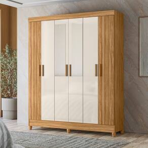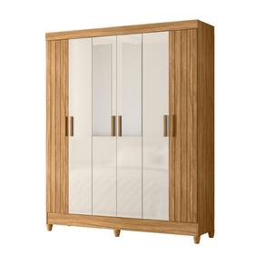 Guarda Roupa Solteiro Frisado com Espelho 6 Portas e Pés Uruguai Moval - Sépia