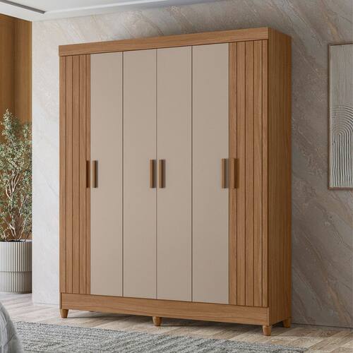 Guarda Roupa Solteiro Frisado 6 Portas e Pés Uruguai Moval, enquanto as duas gavetas possuem corrediças metálicas que garantem um deslizar suave. Os puxadores em MDF acrescentam um toque de elegância ao design. com um acabamento ainda mais completo, tornando o dia a dia mais funcional. Com um excelente espaço interno, este móvel é perfeito para uma organização eficiente e funcional.