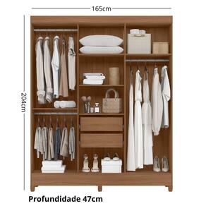 Características: Estrutura MDP e MDF 6 Portas 2 Gavetas Internas Portas com detalhes frisados Corrediças telescópicas Puxadores em MDF Com Pés Cabideiro e Calceiro em alumínio Prateleira suporta 6kg Gavetas suporta 6kg