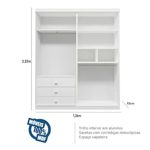 O Guarda Roupa Solteiro Genova 2 Portas 3 Gavetas Bom Pastor é a solução ideal para quem busca organização e praticidade em um único produto sem ocupar espaço no ambiente. Feito em 100% MDF, possui 2 portas de correr, e 3 gavetas espaçosas.