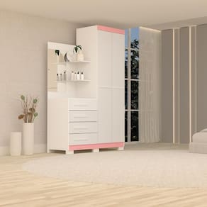 Cor: Bege Médio | Materiais da estrutura: MDF | Tipo de produto: Guarda-roupa Cor: Bran/rosa/azul/lilas