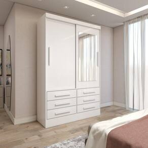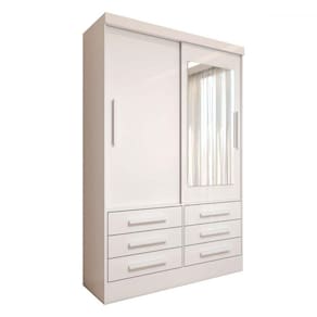 O(a) Guarda-Roupa Solteiro Guaianases 2 Portas 6 Gavetas com Espelho Branco - Loja é produzido em MDP na escala de brilho Brilho, e possui um grau de dificuldade de montagem: Médio.