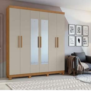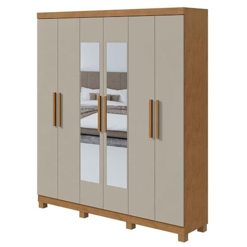 Guarda Roupa Solteiro Jazz 6 Portas Amêndoa Clean Off White com Espelho e Pés ? Lopas