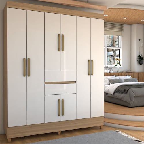 - Acompanha: Guarda-Roupa + Kit Ferragem + Manual de Montagem