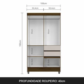 Medidas do Guarda-Roupa Montado: A:190cm | L:105cm | P:40cm