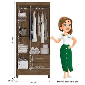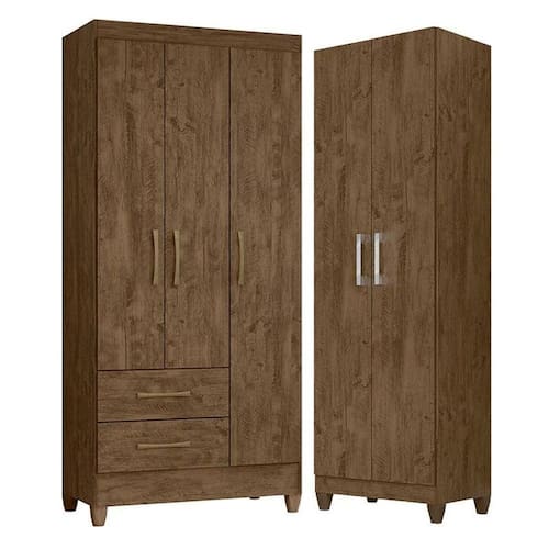 Guarda Roupa Solteiro Lima e Armário Multiuso New Iris Castanho Wood - Moval