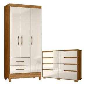 Guarda Roupa Solteiro Lima e Cômoda Georgia Freijó Off White Moval