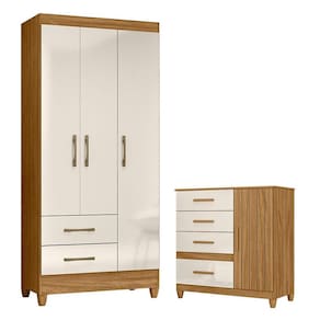 Guarda Roupa Solteiro Lima e Cômoda Vênus com Pés Freijó Off White – Moval