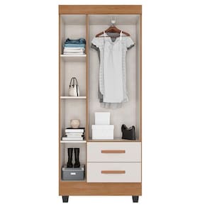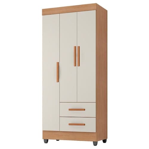 Guarda Roupa Solteiro Lite 3 Portas E 2 Gavetas Nature/off White - Móveis Leão Nature/off White