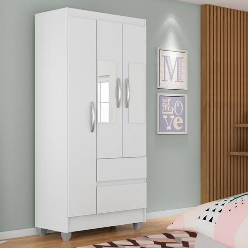 O Guarda-Roupa Solteiro Lohaine 3 Portas 2 Gavetas, é o Roupeiro moderno com gavetas para todos os tipos de roupas. Ele tem um bonito acabamento com Pintura Texturizada, muito resistentes que dão maior destaque à cor e conservam a beleza do móvel por mais tempo.