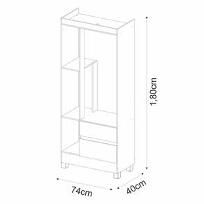 - Medidas do Guarda-Roupa Montado: A:180cm | L:74cm | P:40cm