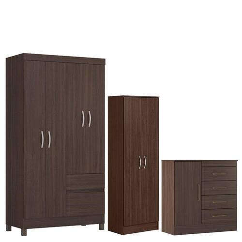 Guarda Roupa Solteiro Lótus com Multiuso Golden com Cômoda Montividéu Café - Demóbile
