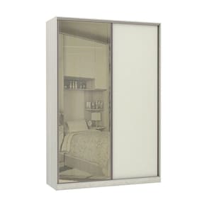 Guarda-Roupa Solteiro Luciane 2 Portas de Correr 3 Gavetas Prime Plus Alumínio com Vidro 8 cm - Bege Claro