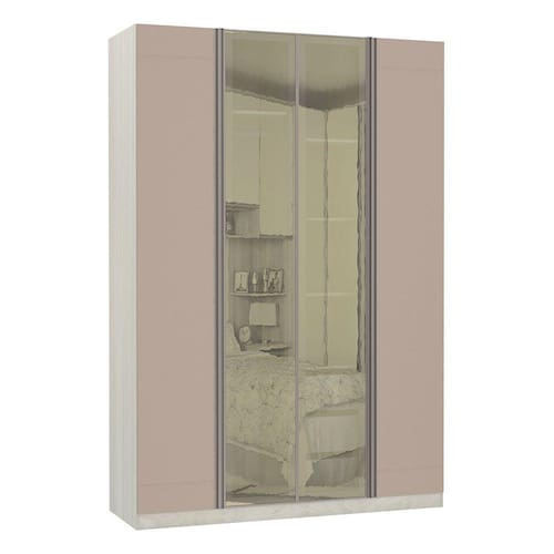 Guarda-Roupa Solteiro Luciane 4 Portas 3 Gavetas Prime Plus Alumínio com Vidro Reflecta - Blush