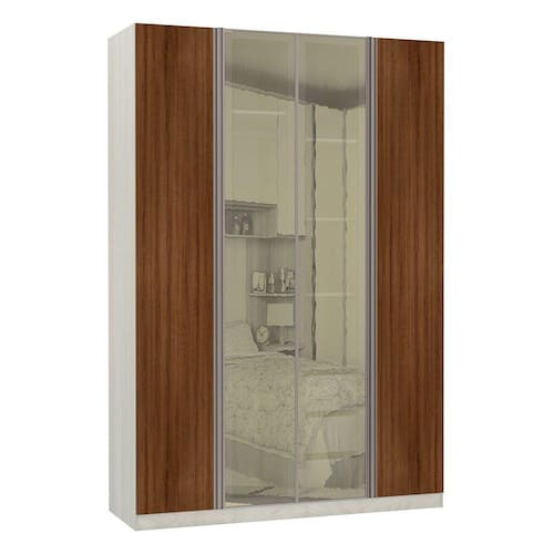Guarda-Roupa Solteiro Luciane 4 Portas 3 Gavetas Prime Plus Alumínio com Vidro Reflecta