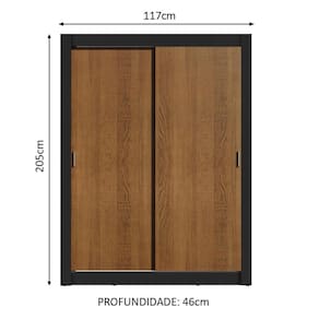 Medidas totais do guarda-roupa: 205 cm de altura x 117 cm de largura x 46 cm de profundidade.