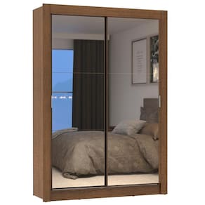 Itens inclusos: - Quatro (4) gavetas com corrediças metálicas - Um (1) cabideiro metálico grande - Duas (2) prateleiras e três (3) nichos - Duas (2) portas de correr com espelhos e puxadores em PVC