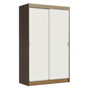 Itens inclusos: - Duas (2) portas de correr em MDP com puxadores em alumínio - Duas (2) gavetas com corrediças metálicas - Dois (2) cabideiros de madeira - Cinco (5) nichos