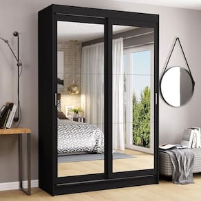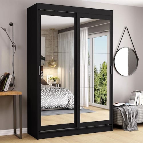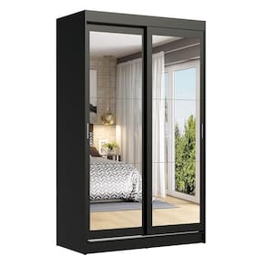 Guarda-Roupa Solteiro Madesa Tokio 2 Portas de Correr de Espelho 2 Gavetas - Preto