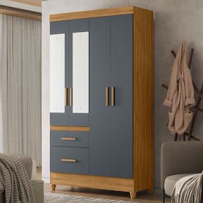 Para mais informações, acesse nossa Central de Atendimento. Tipo de Guarda Roupa: Solteiro | Tonalidade: Multicolorido | Quantidade de Portas: 4 | Fabricante: Moval Cor: Freijó/Cinza