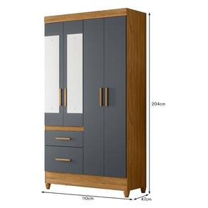 Guarda Roupa Solteiro Madri 4 Portas E 2 Gavetas Freijó Cinza Com Espelho Moval Freijó Cinza