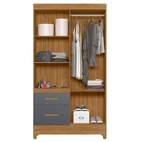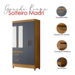 Guarda Roupa Solteiro Madri 4 Portas Freijó Cinza com Espelho - Moval