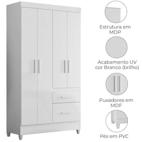 Com design inteligente para valorizar qualquer ambiente, o Guarda-Roupa Solteiro Madri oferece praticidade e organização no dia a dia. Estrutura em MDP (15/12 mm) e acabamento em pintura UV. Composto por portas com dobradiças metálicas, cabideiro interno (alumínio), prateleiras e gavetas com corrediças metálicas. Produto com dupla opção de montagem: pés em PVC ou sapatas plásticas (2 mm), conforme preferência do cliente. Este produto será entregue em 02 volumes.