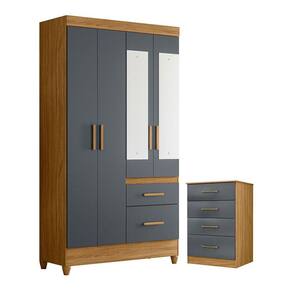 Guarda Roupa Solteiro Madri com espelho e Cômoda MS913 Freijó Cinza – Moval