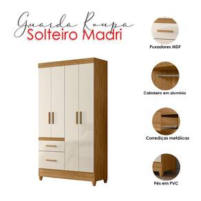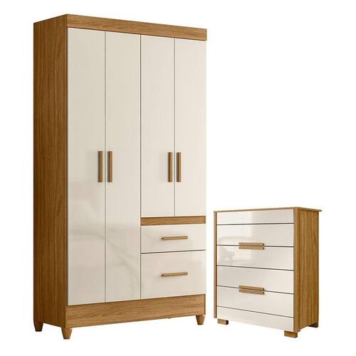 Guarda Roupa Solteiro Madri e Cômoda Dhara Freijó Off White – Moval
