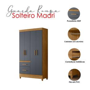 Guarda Roupa Solteiro Madri e Cômoda Georgia Freijó Cinza – Moval