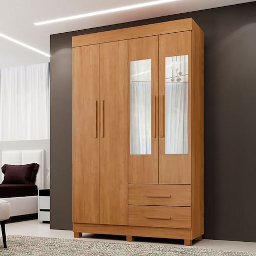 O(a) Guarda-Roupa Solteiro Malta 4 Portas 2 Gavetas com Espelho Cinamomo - Pnr Móveis é produzido em MDP na escala de brilho Fosco, e possui um grau de dificuldade de montagem: Médio.