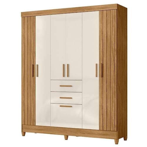 Guarda Roupa Solteiro Malta 7 Portas Freijó Off White - Moval