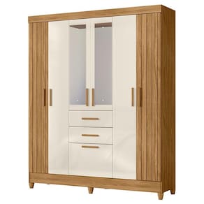 Guarda Roupa Solteiro Malta com espelho e Cômoda Vênus Freijó Off White – Moval