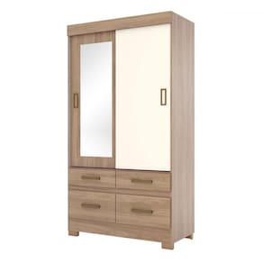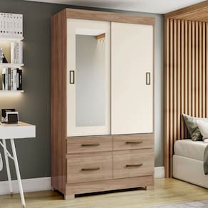 O(a) Guarda-Roupa Solteiro Marel 2 Portas 4 Gavetas com Espelho Flex Off White/Jequitibá - Briz é produzido em MDP na escala de brilho Brilho e Fosco, e possui um grau de dificuldade de montagem: Médio.