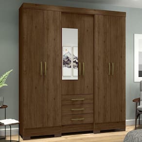 O(a) Guarda-Roupa Solteiro Mentor 6 Portas 3 Gavetas com Espelho Castanho Hp - Briz é produzido em MDP na escala de brilho Brilho e Fosco, e possui um grau de dificuldade de montagem: Médio.