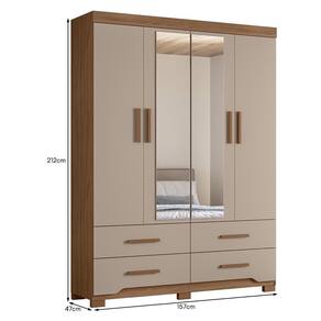 Guarda Roupa Solteiro Miami 4 Portas e 4 Gavetas com Espelho - Moval