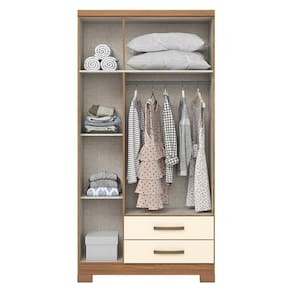 Guarda Roupa Solteiro Miami Ambiente 3 Portas 2 Gavetas com Chave Nature Off White - Henn